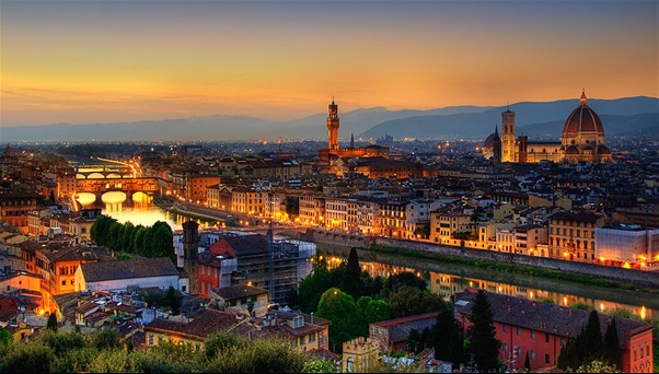 Florence, the birthplace of the Renaissance and home to the Medici family, was one of the wealthiest and powerful cites of the Medieval era and includes numerous palaces, churches, museums, art galleries, and theatres.