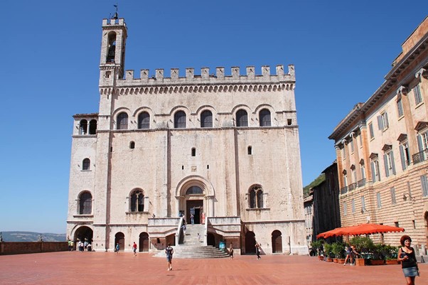 Overlooking the Piazza Grande is the imposing Palazzo del Consoli, built during the early 14th-Century and now the home to the Museo Civico with an impressive collection of inscriptions, fragments, statues, and marblework from Roman times and the early medieval period. Dominating the town is the magnificent Palazzo Ducale built in 1470 with two central buildings, one facing the valley and the other towards the mountain, and with a splendid central courtyard, the Corte d’Onore.